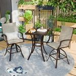 POTEBAN 3-piece Outdoor Swivel Bar Stool Set,2 Patio Metal High Back And Armrest Bar chairs With Bar Table for Backyard,Lawn Garden,Balcony,Pool