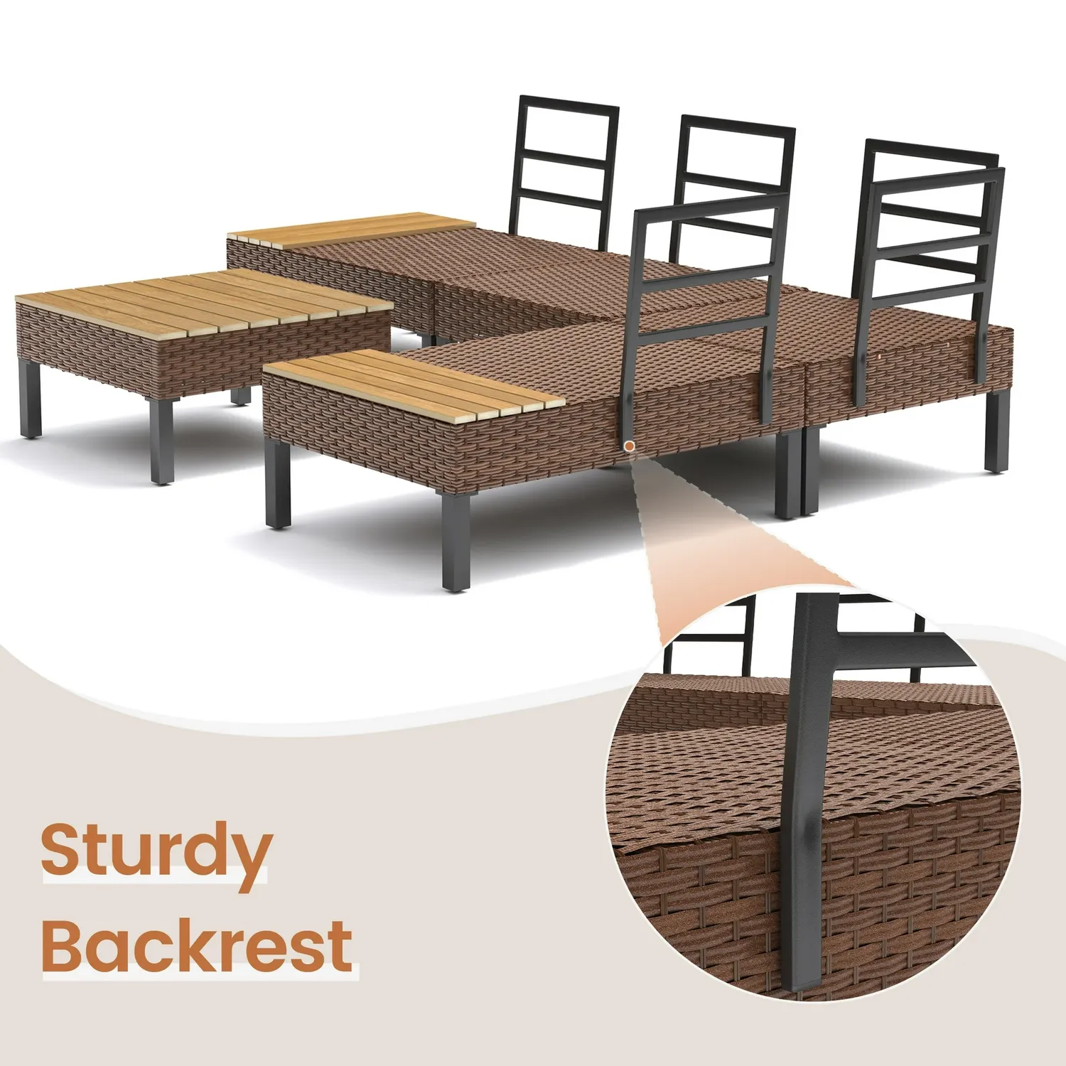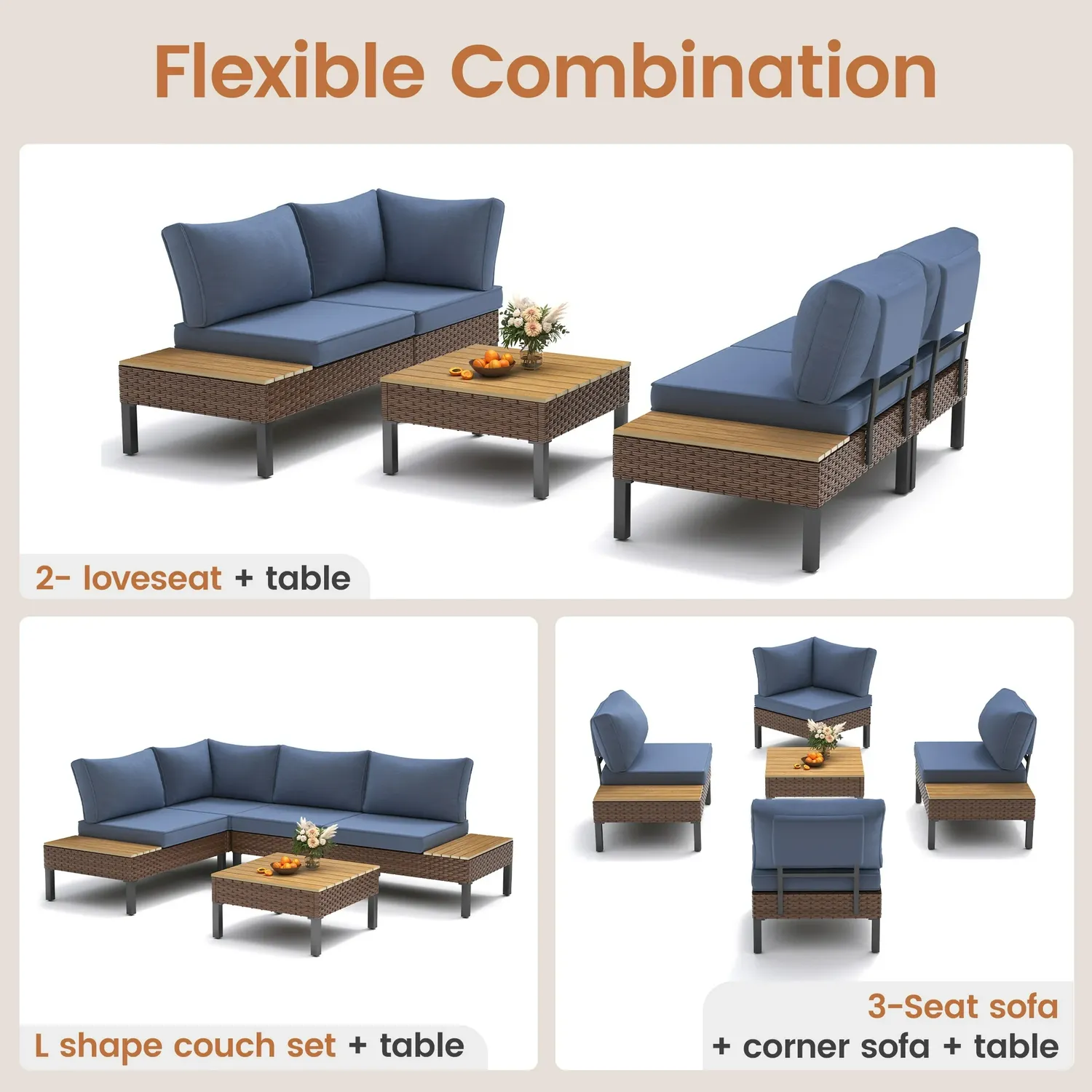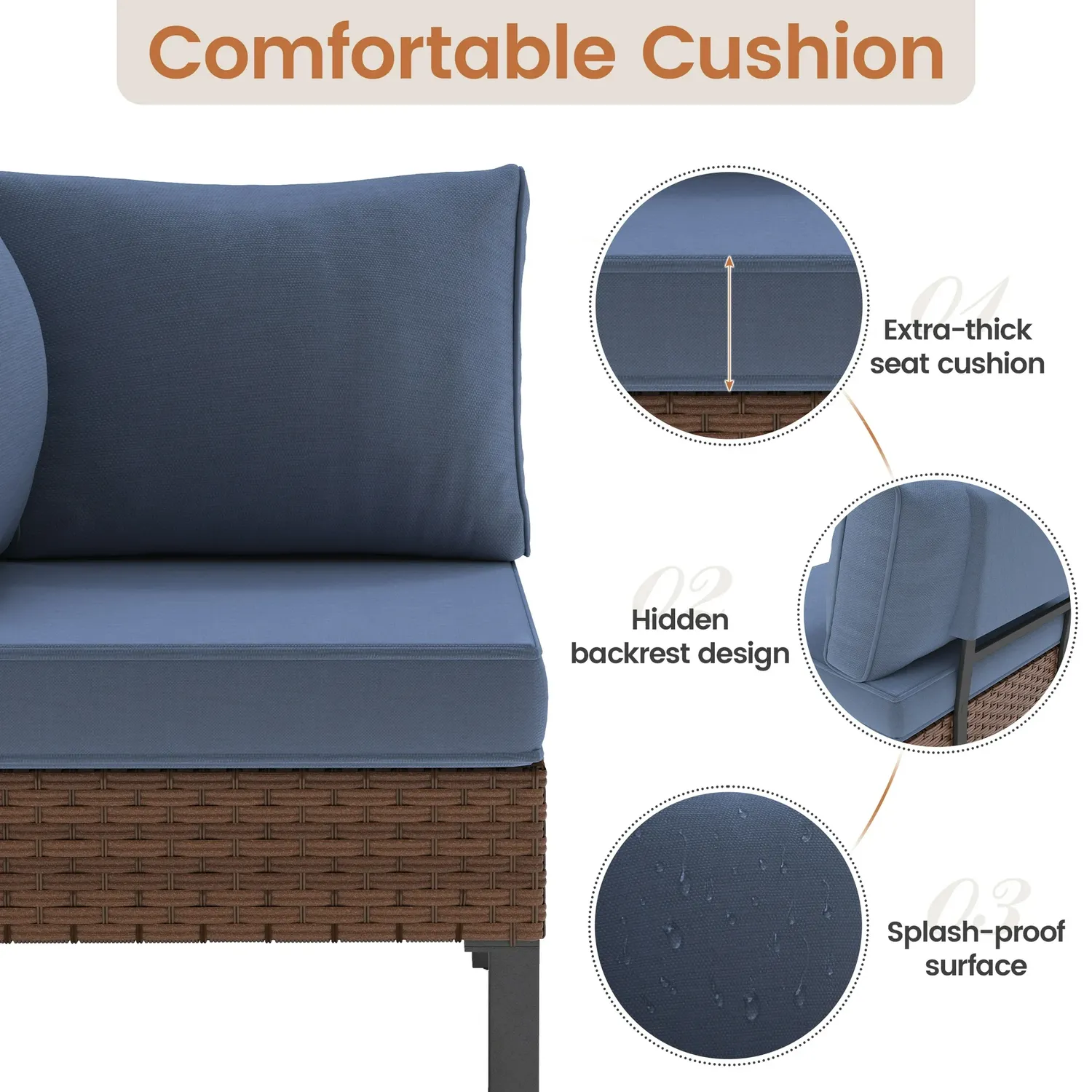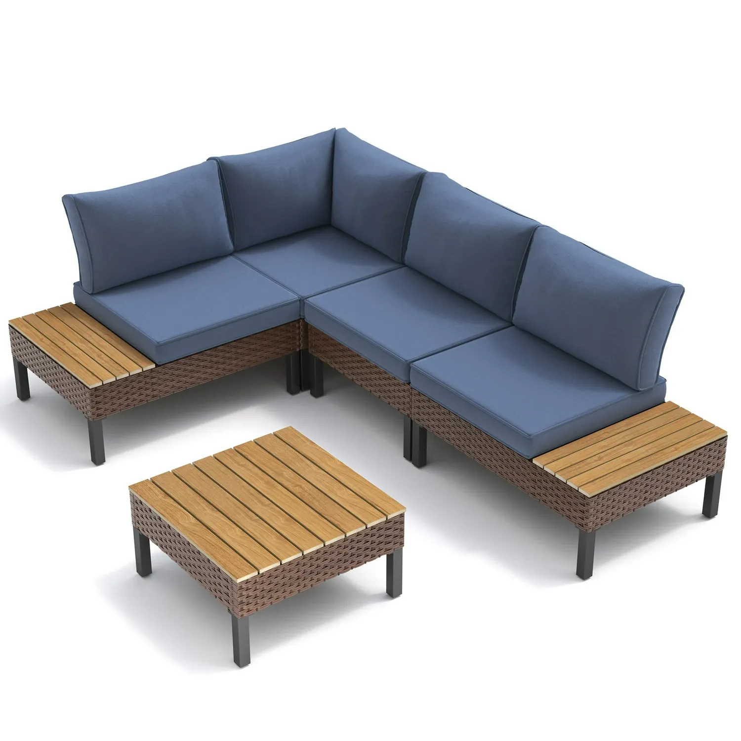 Poteban 5-piece Rattan Outdoor Patio Sofa Set,L-Shaped Sectional Sofa Couch with Coffee Table for Backyard,Lawn,Garden,Navy Blue