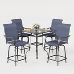 POTEBAN 5 Pieces Patio Swivel Bar Set, All Weather Outdoor High Top Bar Stool Bistro Set with 4 Bar Chairs and Glass Table Navy