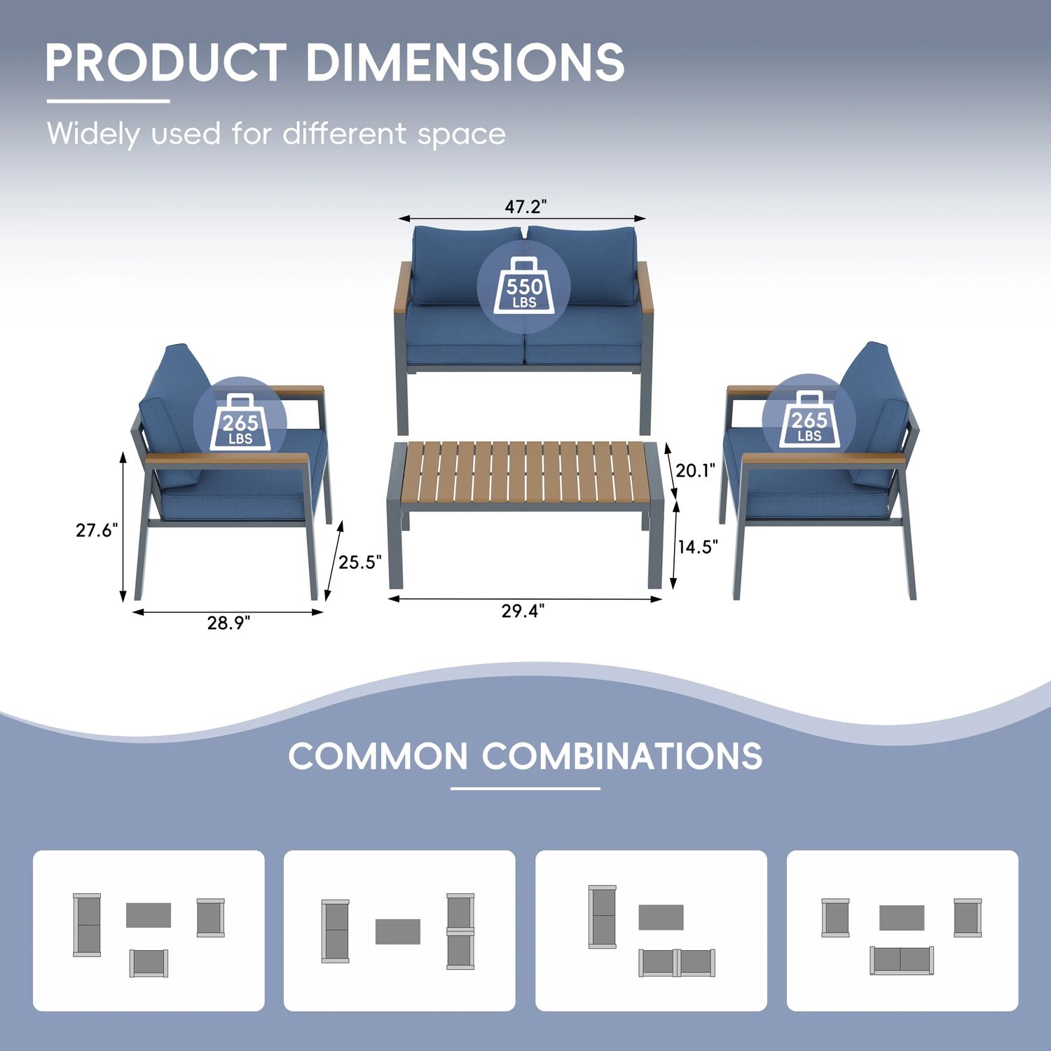 Loveseat+2 Armchair+Table