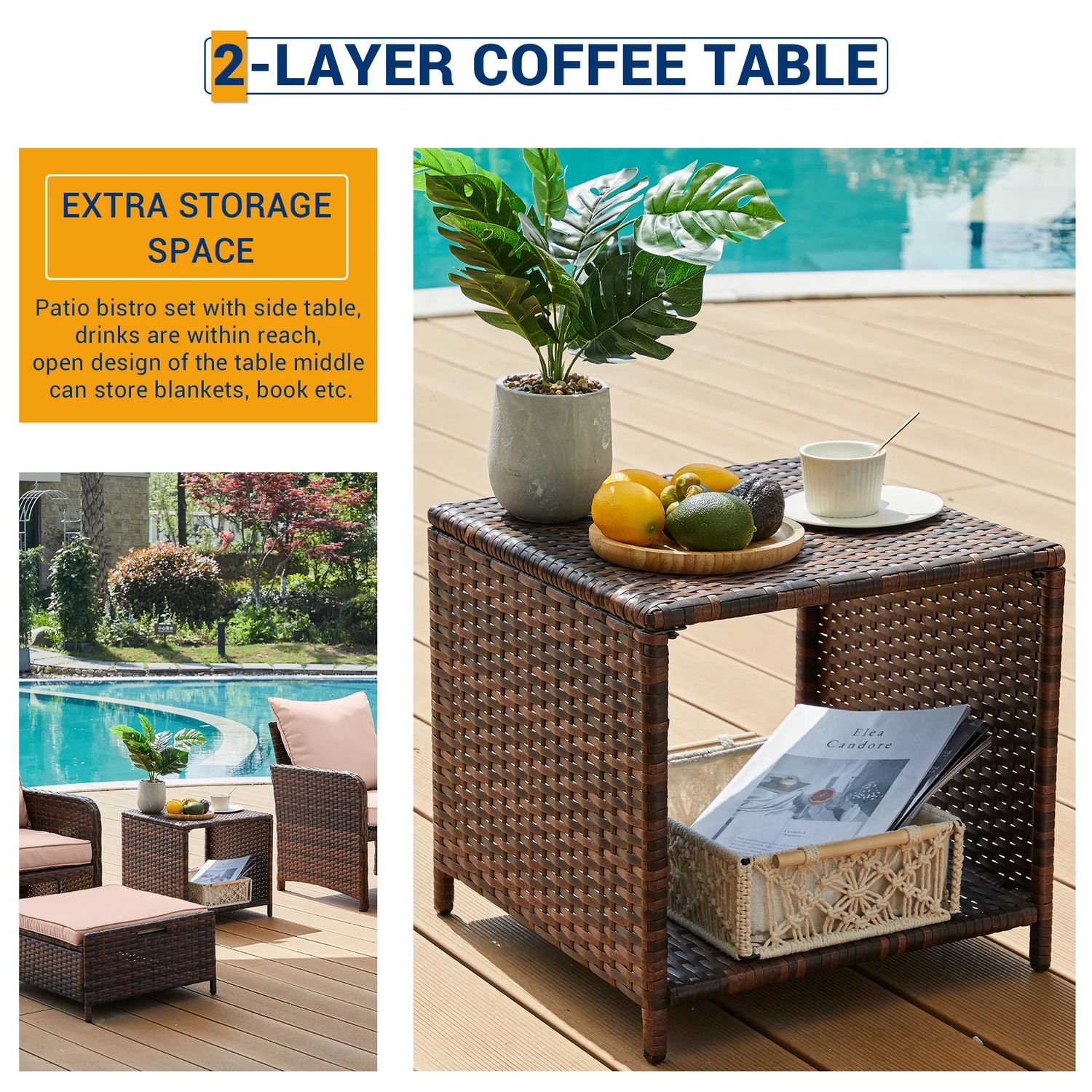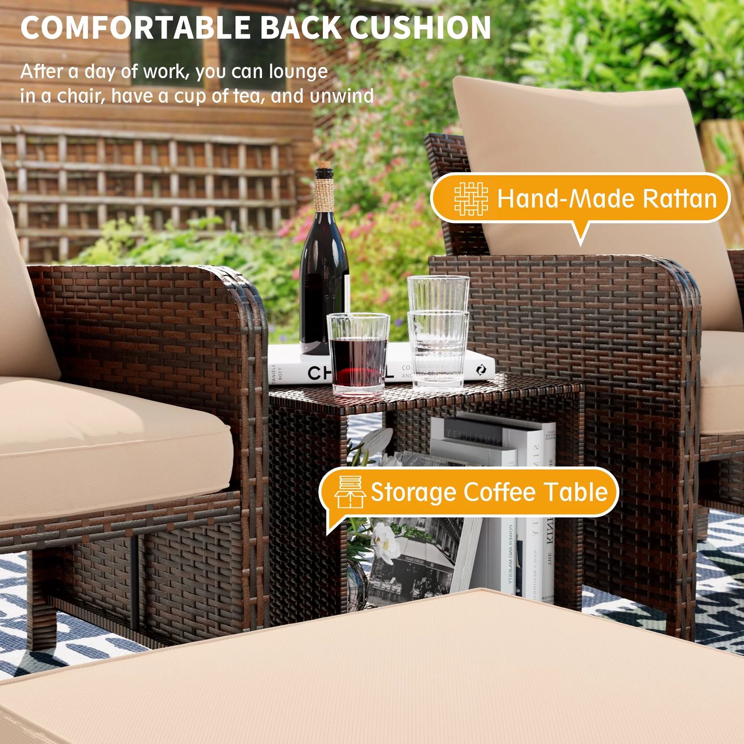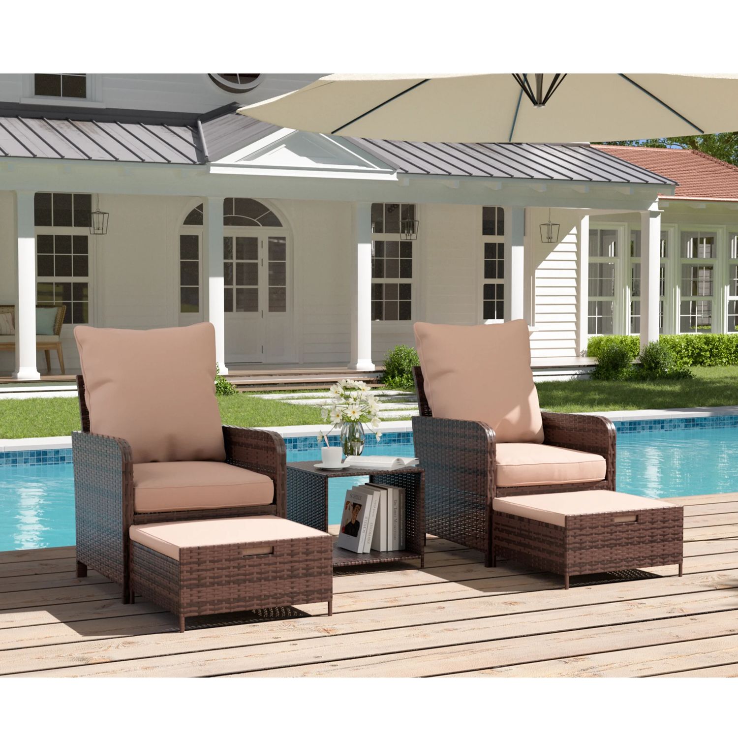 Poteban Balcony Furniture 5 Piece Patio Furniture Set, Outdoor Patio Chair with Ottoman for Front Porch Deck, Wicker Lounge Chair with Side Table