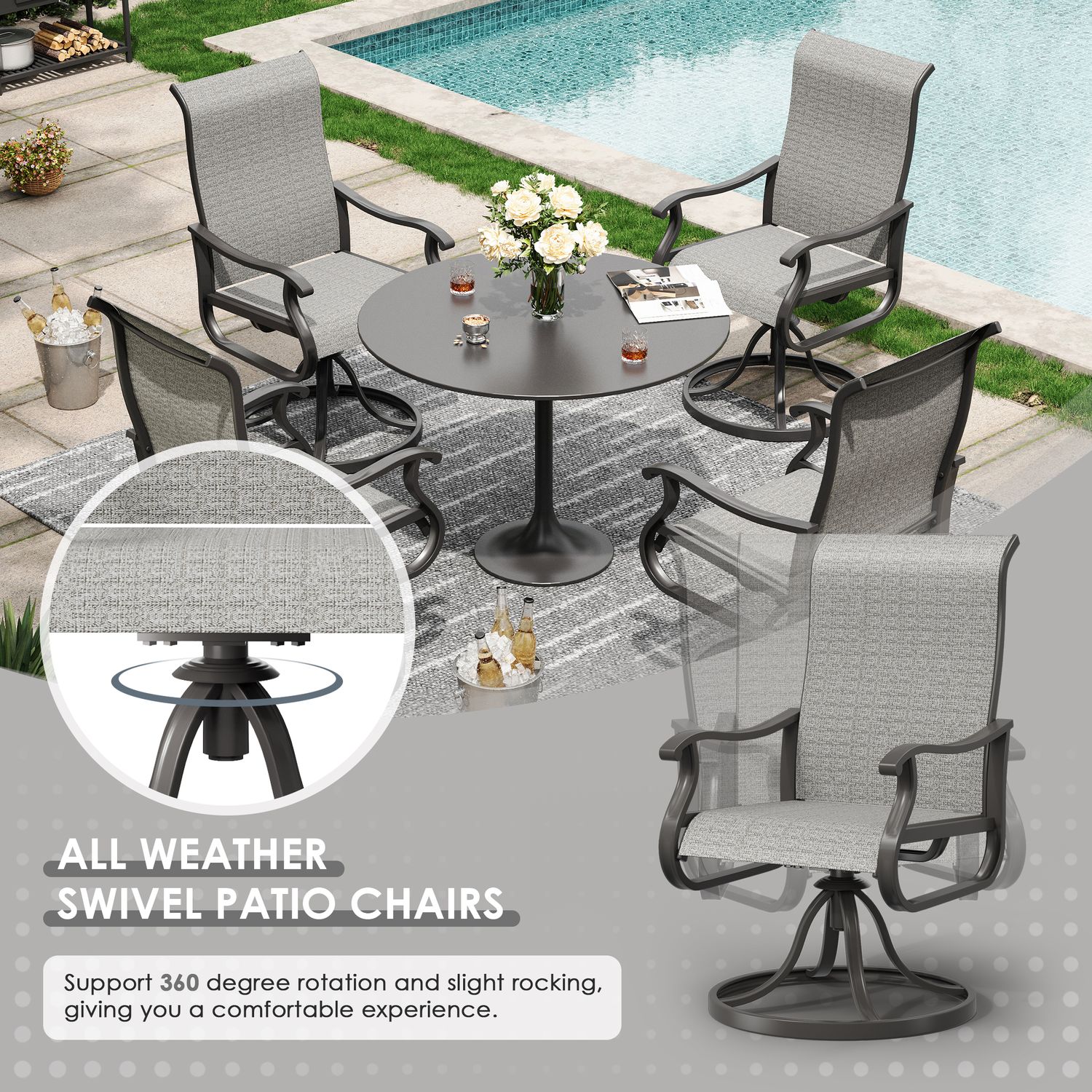 Poteban High Back Outdoor Dining Chairs Set of 4, All Weather Swivel Patio Chairs, Breathable Garden Outdoor Furniture for Backyard Deck