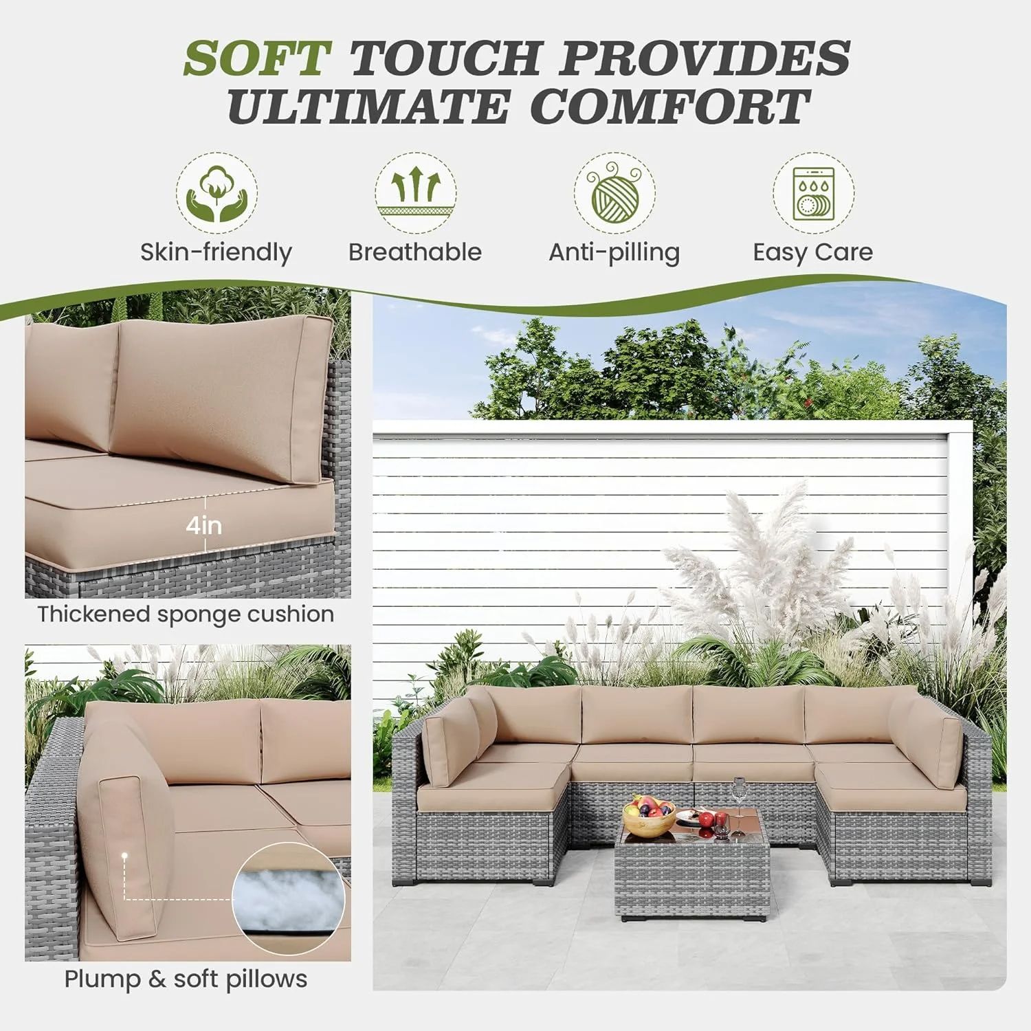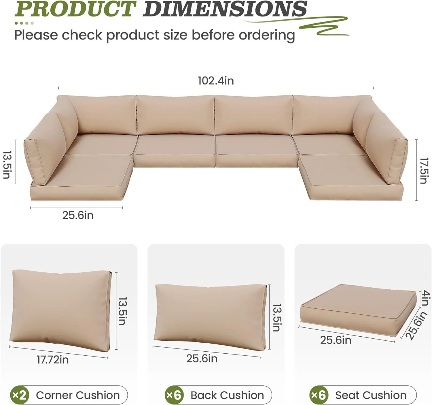 Poteban Outdoor Cushions for Patio Furniture Replacement, Waterproof Patio Furniture Cushions, Deep Seat Patio Cushions
