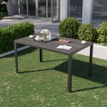 POTEBAN Outdoor Dining Table for 6, Metal Rectangle Table with Umbrella Hole & Wood-look Top for Garden, Black