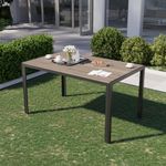POTEBAN Outdoor Dining Table for 6, Metal Rectangle Table with Umbrella Hole & Wood-look Top for Garden, Brown