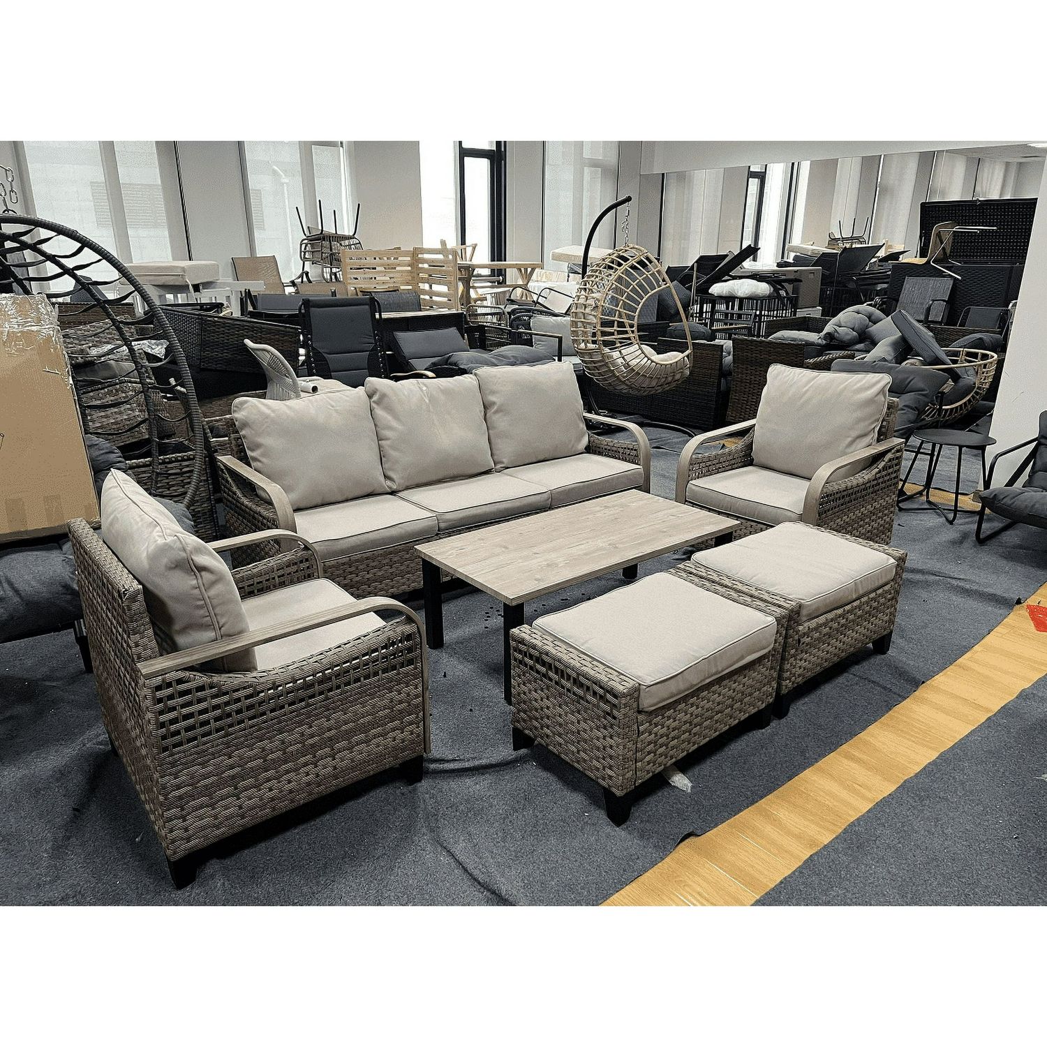 Poteban Outdoor Patio All Weather Wicker Furniture Sets,with Coffee Table, Sofa, Swivel Rocking Chair and Ottoman,for Pool, Backyard, Garden