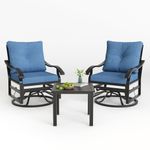 POTEBAN Outdoor Swivel Rocker Chairs, 3 Piece Metal Patio Rocking Chairs with Padded Cushions Patio Bistro Furniture Set with Side Table Blue