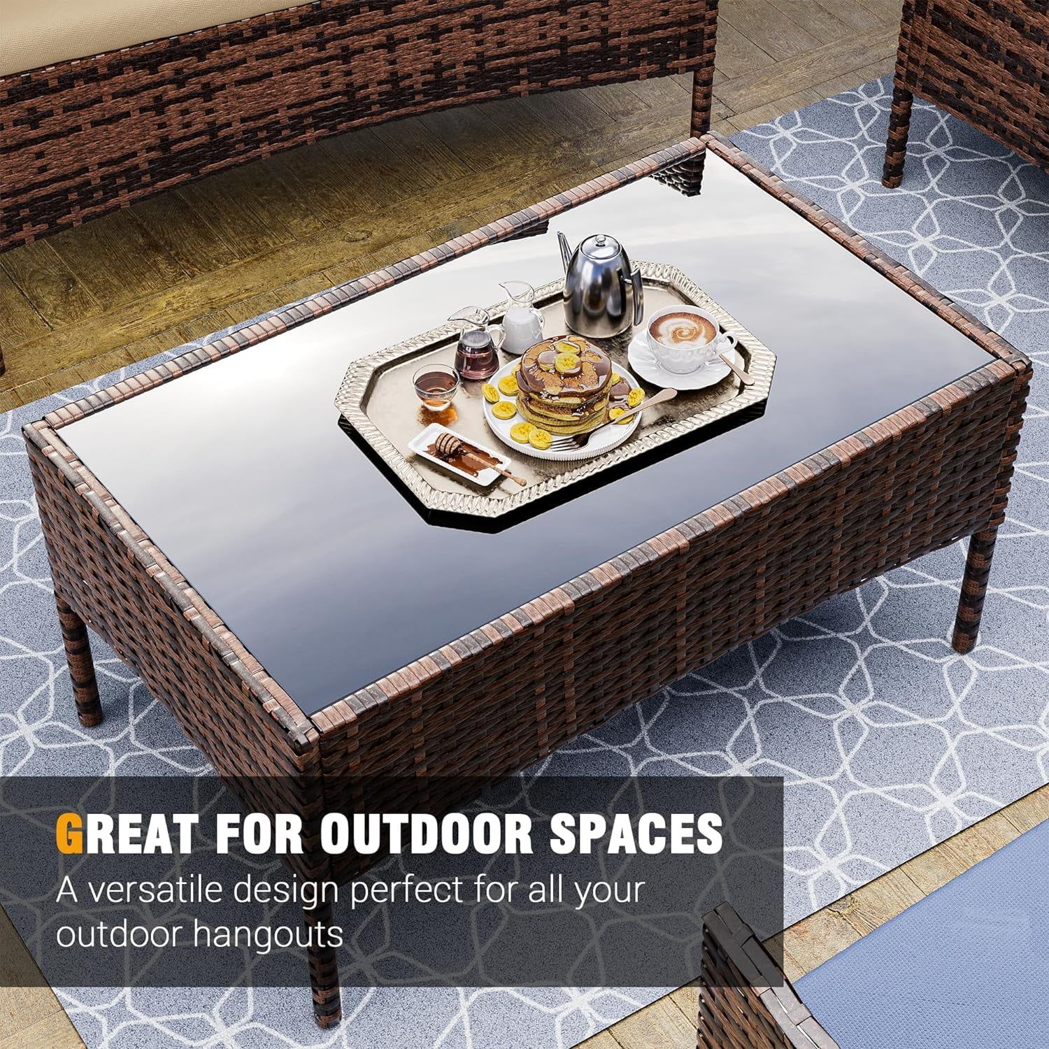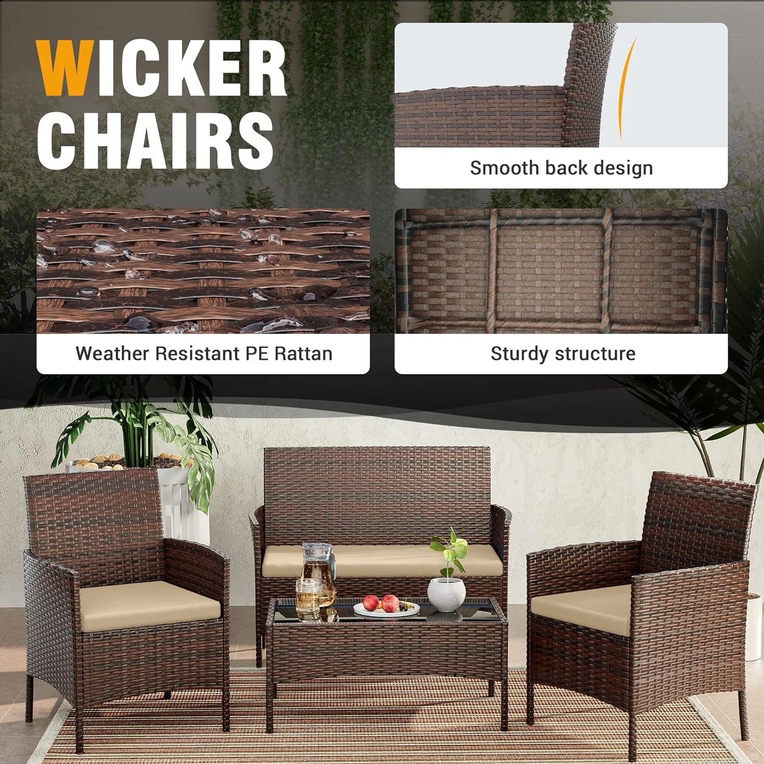 Poteban Patio Furniture 4 Pieces Outdoor Wicker Rattan Chair Balcony Conversation Sets Porch Furniture Sectional Loveseat Cushions